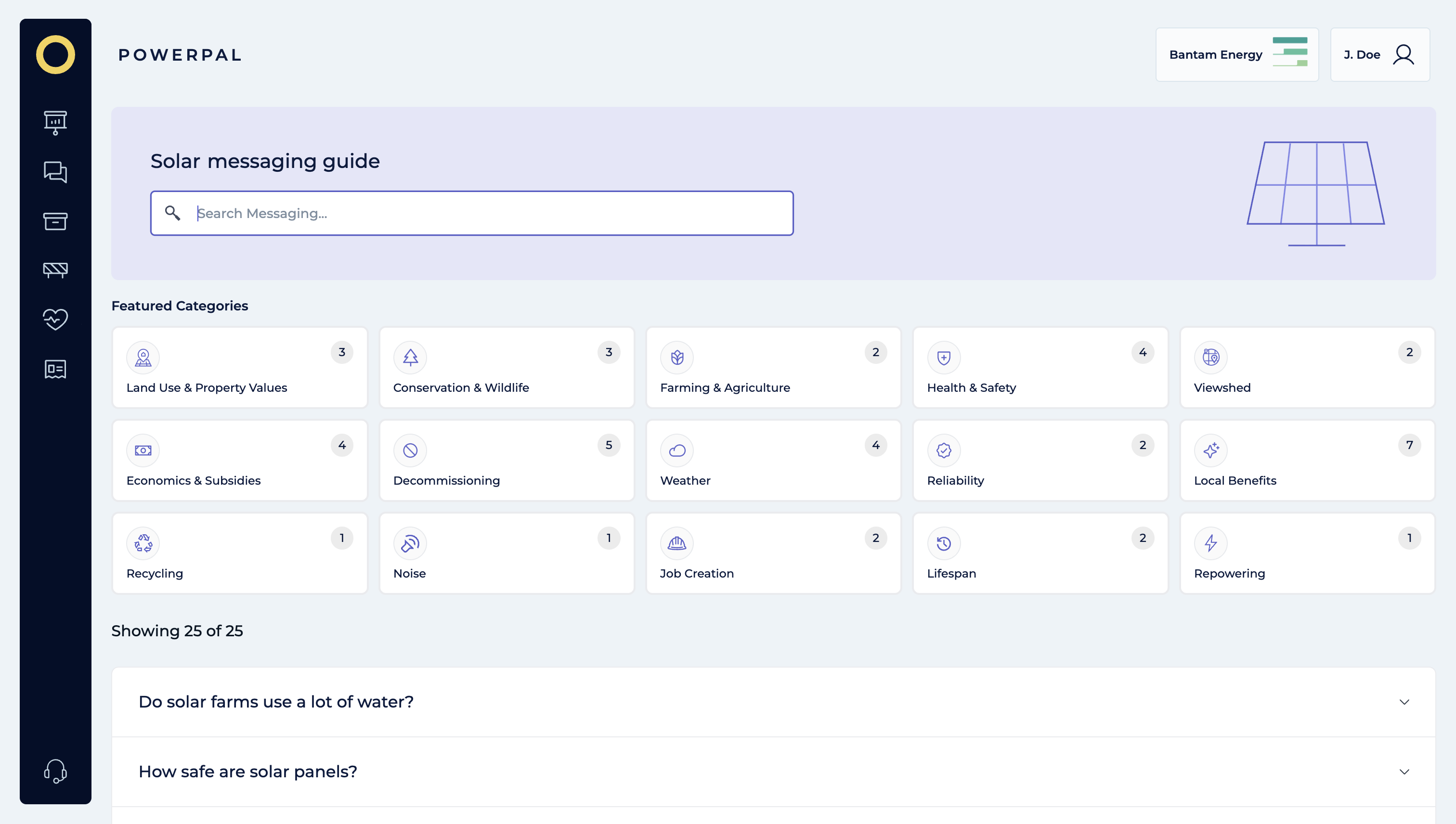 Get instant, evidence-based answers to your toughest renewable energy questions with our AI-powered chatbot. Trained on the latest research, polling, and communications data, PowerPal can guide you through topics like solar, wind, and battery energy storage systems — or help you explore curated Messaging FAQs for deeper insight.